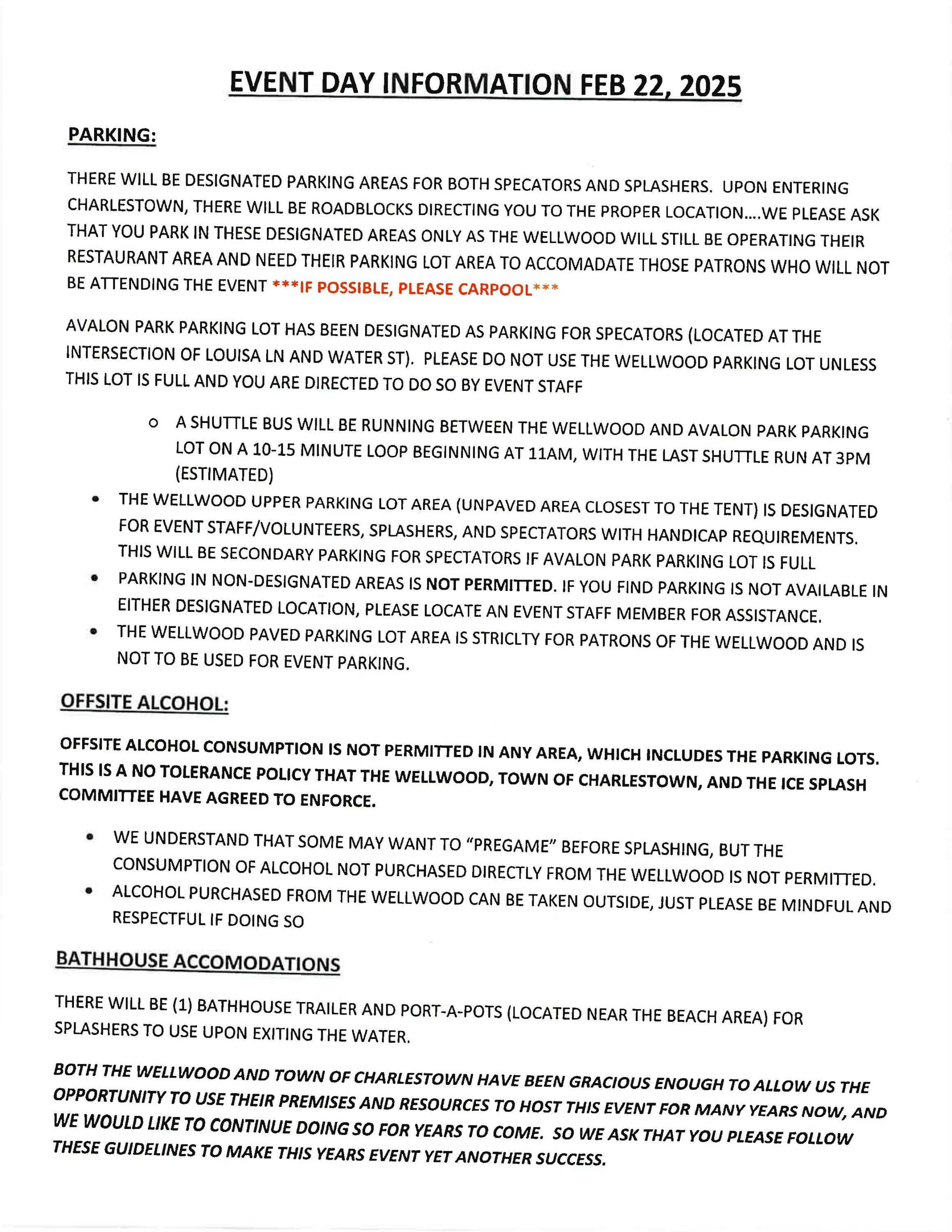 Registration begins @ 11:30am Splash Time begins @1:00pm